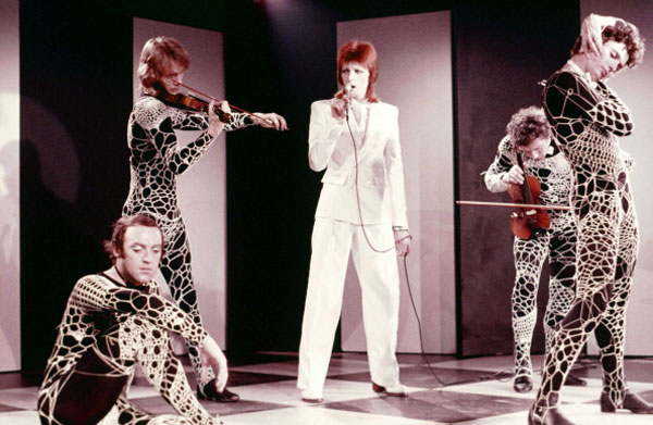 Bowie performed in a netted costume with a pair of glittery hands reaching across his chest. The hand over his crotch had been deemed too risqué for American television and was removed. After a playback of the first take showed his jockstrap was visible Bowie went backstage to remove that as well.